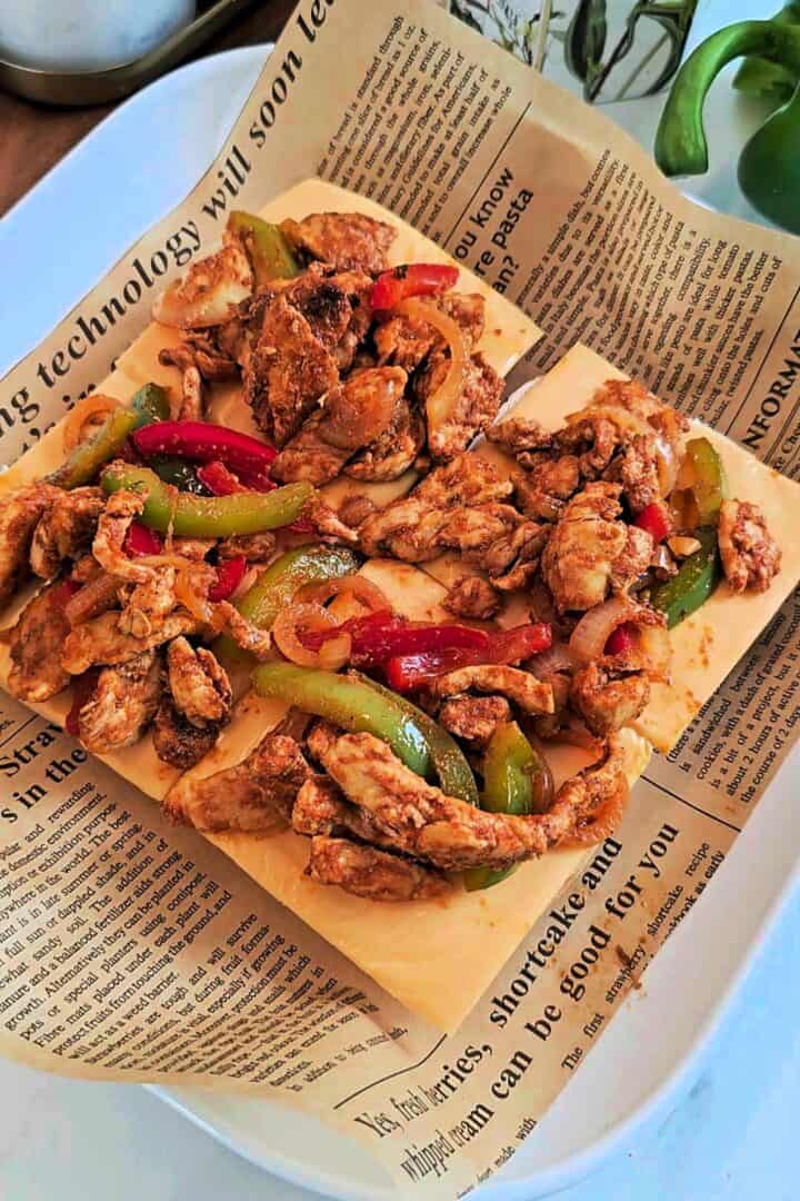 - Add the filling: Spoon the fajita chicken mixture evenly over the cheese.